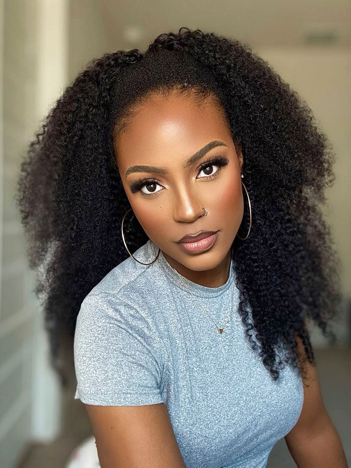 Kinky Curly Half Wig Human Hair 200 Density 3-In-1 Flip Over Half Wigs Glueless Wear and Go Wigs | U-TIMES