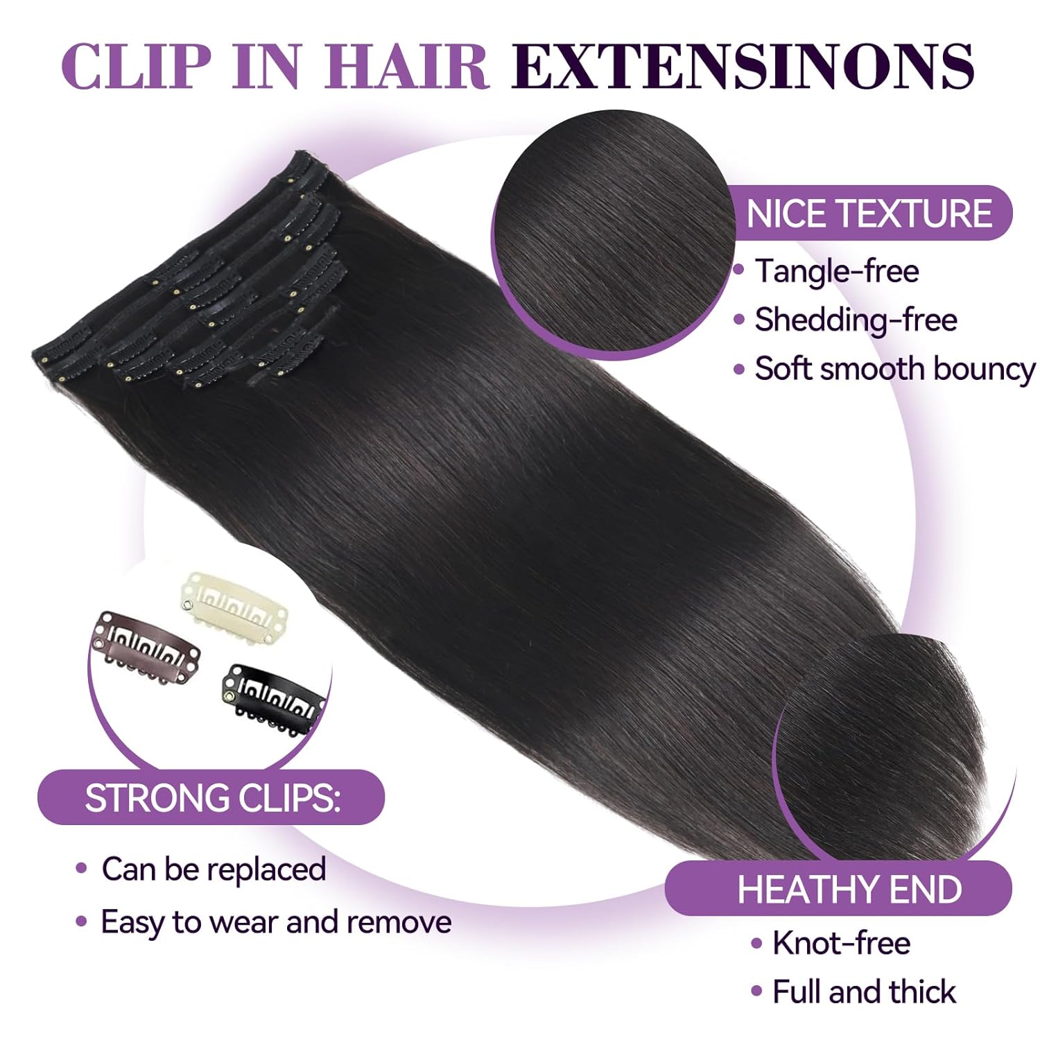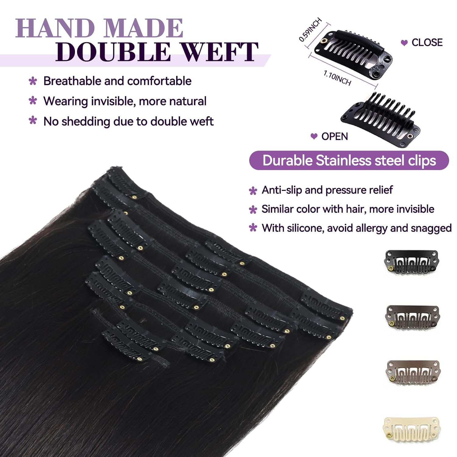 U-TIMES Clip in Hair Extensions Body Wave Real Human Hair 120g Seamless Invisible Human hair Extensions Clip ins for Women 7pcs #1B-Natural Black